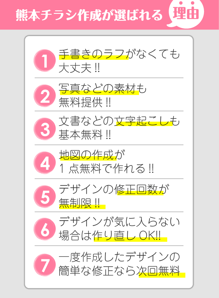熊本チラシ作成のチラシデザイン、チラシ作成、チラシ制作、チラシ印刷の強み