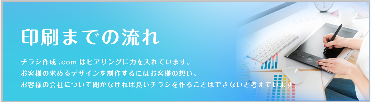 熊本チラシ作成.comでは、お客様の思いを形にするため、ヒアリングに力をいれております。何を伝えていいかわからないという方も多いかと思いますが、好きな色、思い、こんなことをしたいなど、ざっくりとしたイメージで構いませんので、担当スタッフにお伝えください。それを形にするのがプロの私たちの仕事ですので、安心してお任せしていただければと思います。